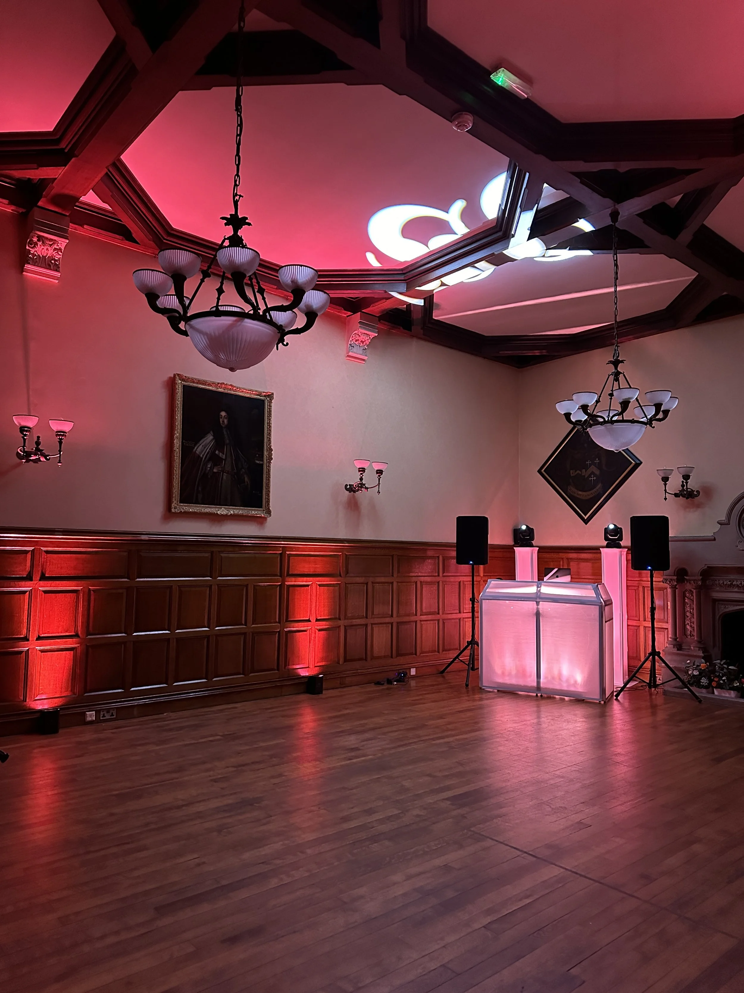 - 1 x Standard uplighting package to your colour theme (DJ and area behind DJ setup)