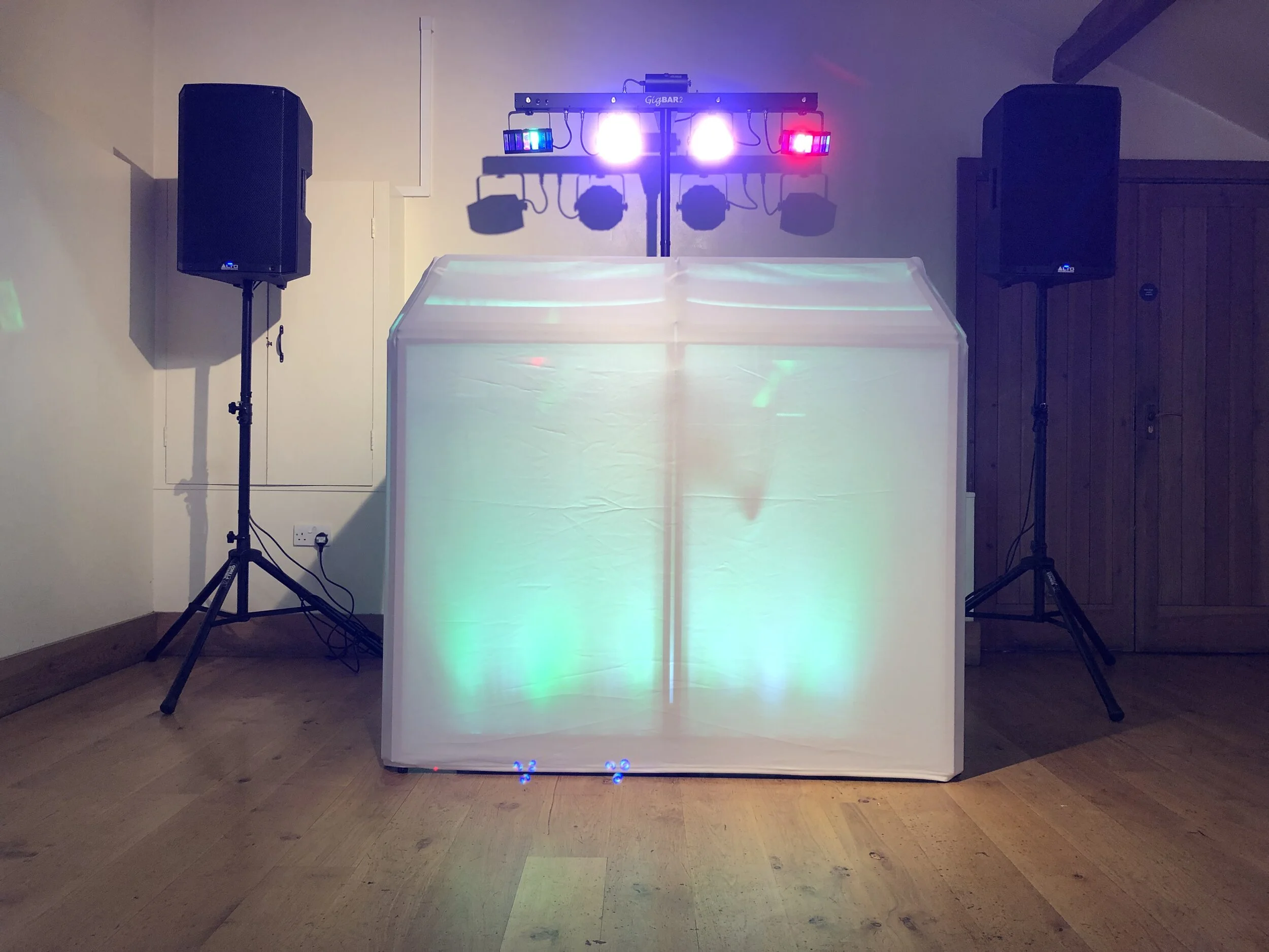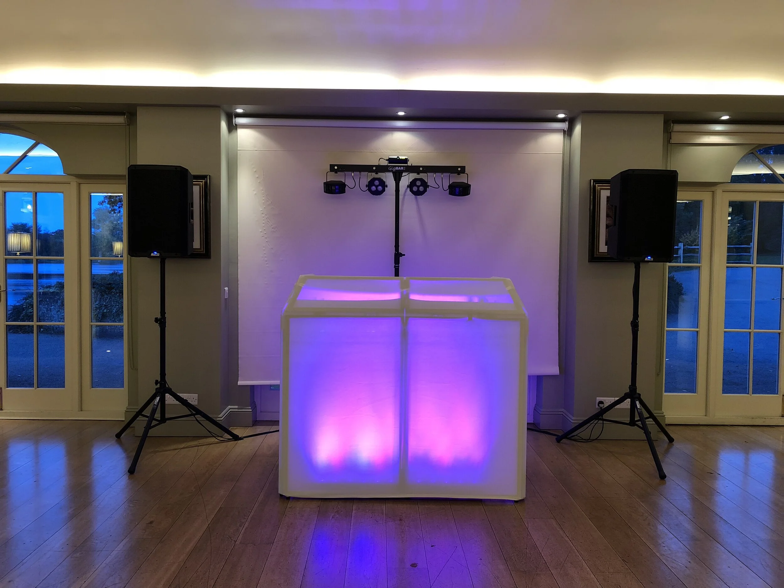 - 1 x Standard uplighting package to your colour theme (DJ Booth and area behind DJ Set up)